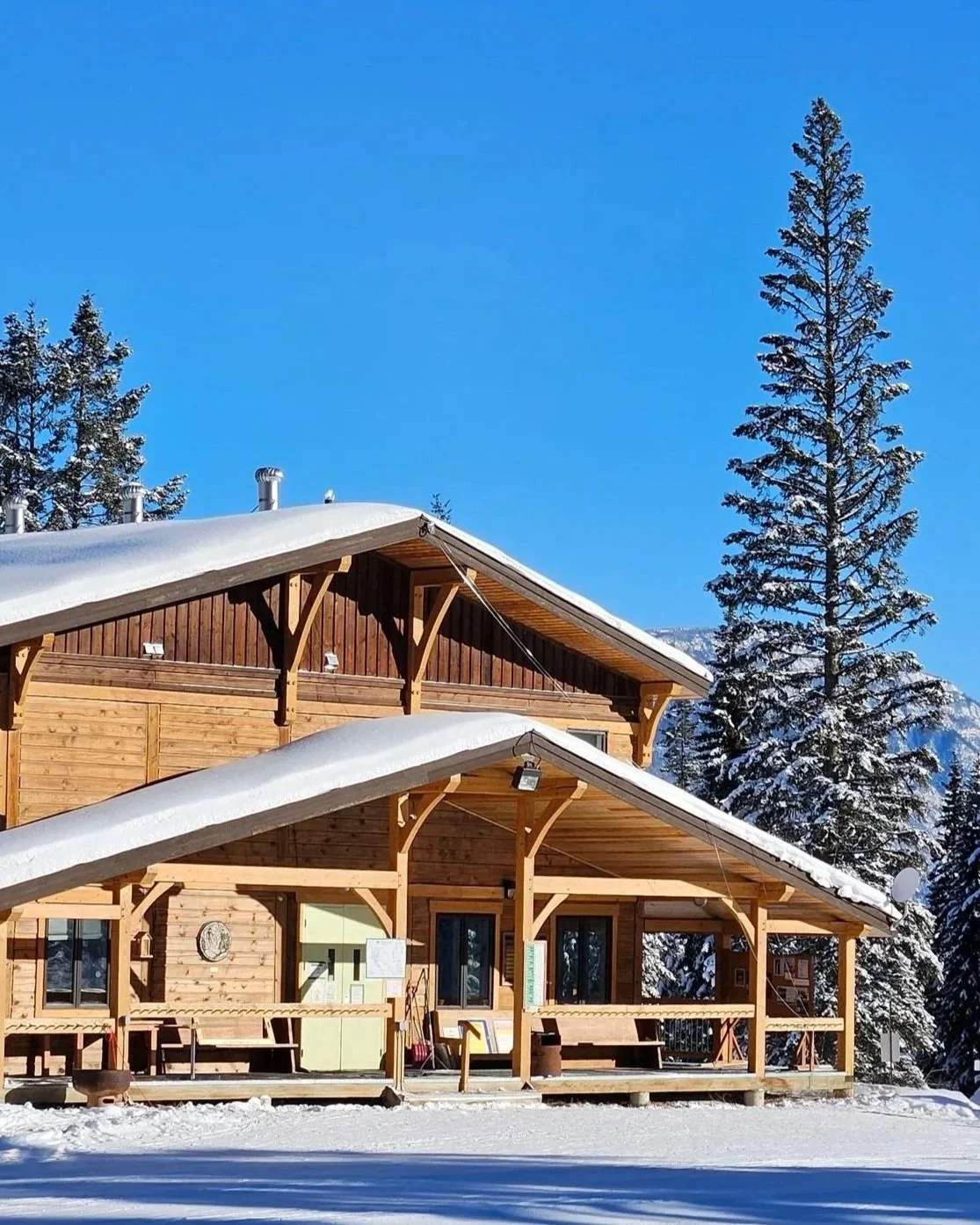 The Golden Nordic Ski Club maintains a beautiful, geothermal-heated log chalet for members and guests to warm up, have a warm drink or lunch, and to get changed before/after skiing.