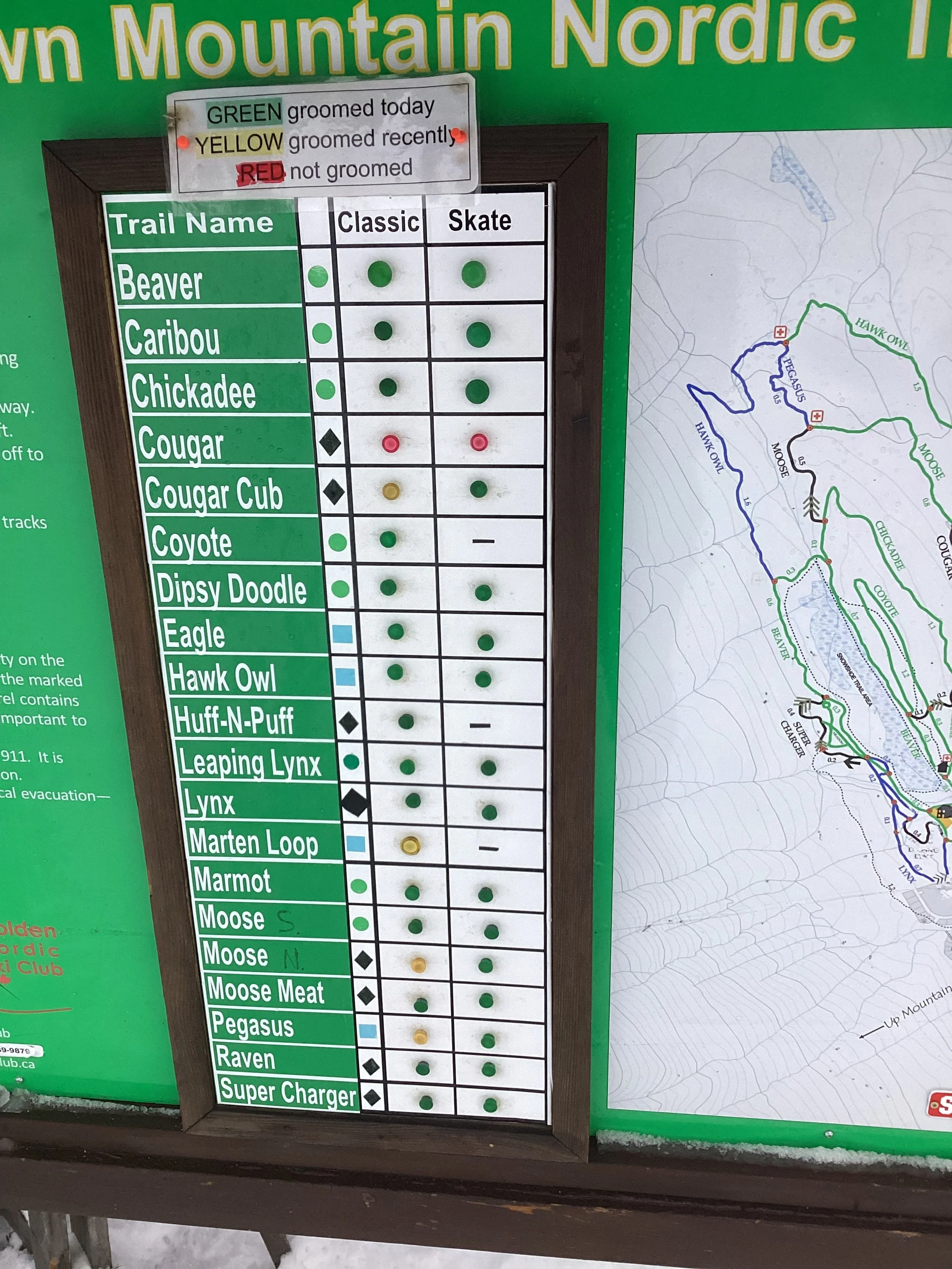 Sign in before heading out and pay the required trail fee(included with Golden Nordic Ski Club membership).