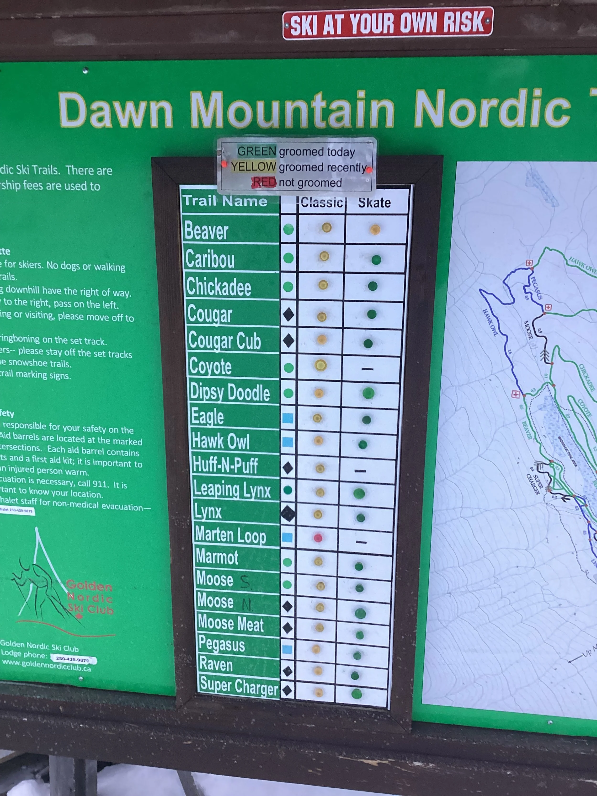 Sign in before heading out and pay the required trail fee (included with Golden Nordic Ski Club membership).